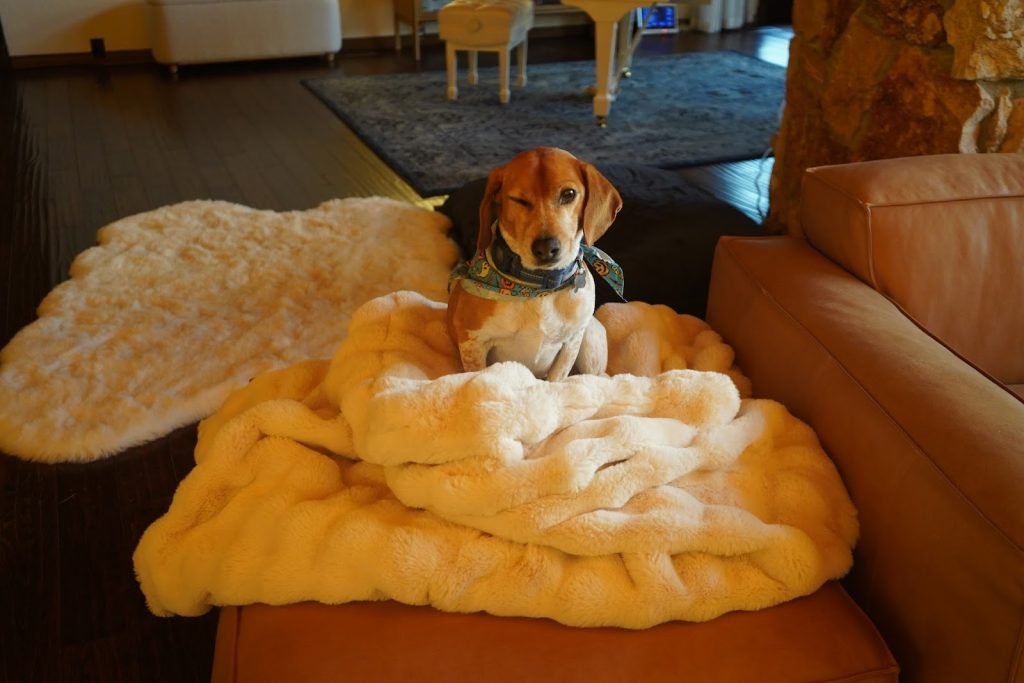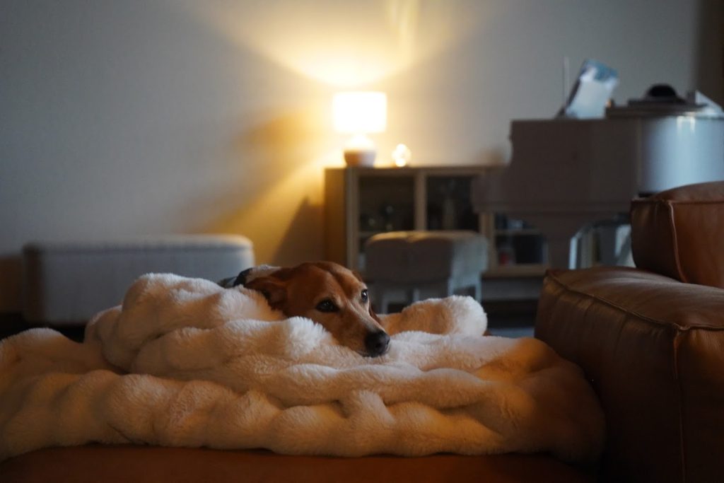 (在长达4小时的采访里,一开始还很精神的狗狗也钻进了毛毯里)